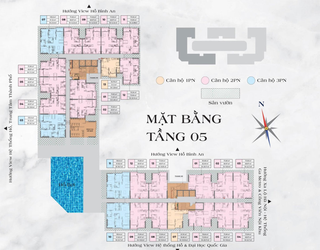 🔸 Quy mô: gồm 3 block cao 30 tầng, chia thành 5 khối. Trong đó: