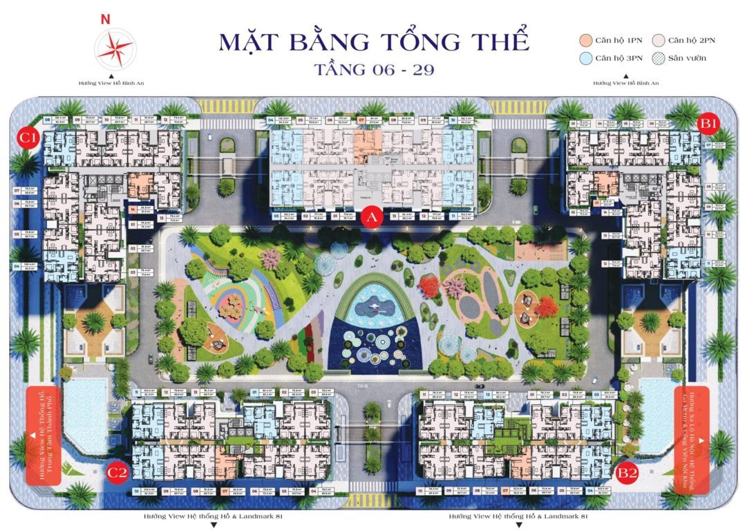 Dự án bao gồm 3 Block A, B, C và 5 toà nhà: