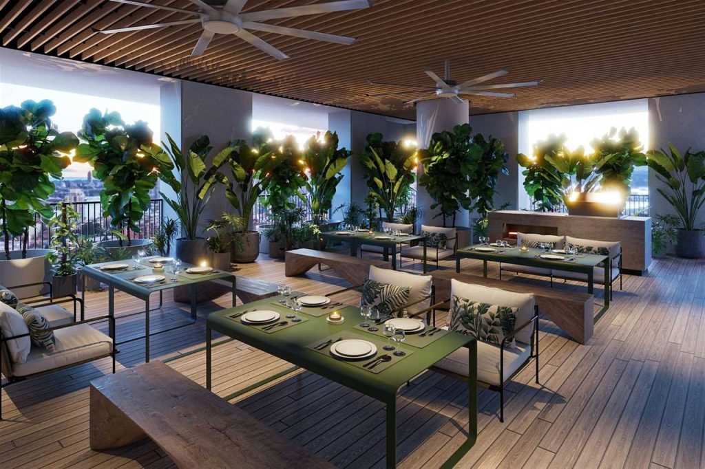 Thương mại và Dịch vụ: Trung tâm thương mại 5 tầng (Thương Xá Phú Mỹ Salacia); Khu BBQ ngoài trời; Sảnh tiệc trong nhà.