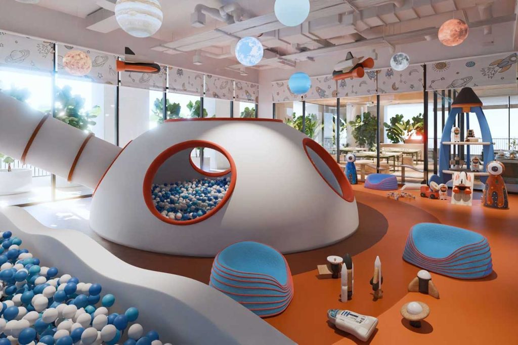 Giáo dục và Trẻ em: Trường mầm non, khu vui chơi trẻ em.