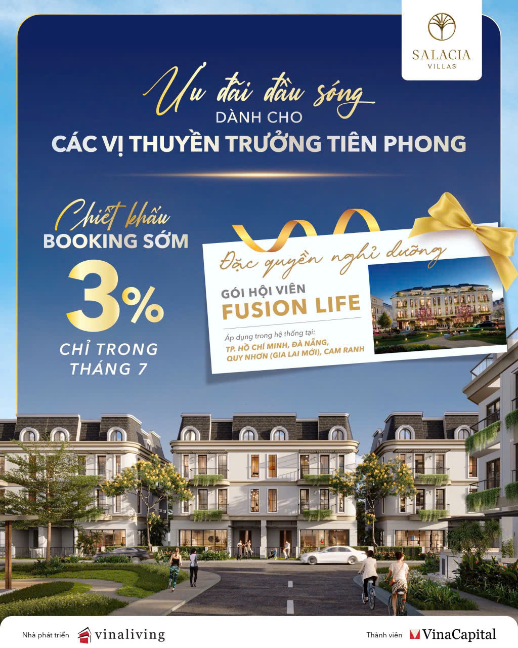 Đặc biệt, cư dân Salacia Villas Phú Mỹ được trở thành Hội viên Fusion Life – tận hưởng 25 ngày đêm nghỉ dưỡng tại các resort trong hệ sinh thái VinaLiving.