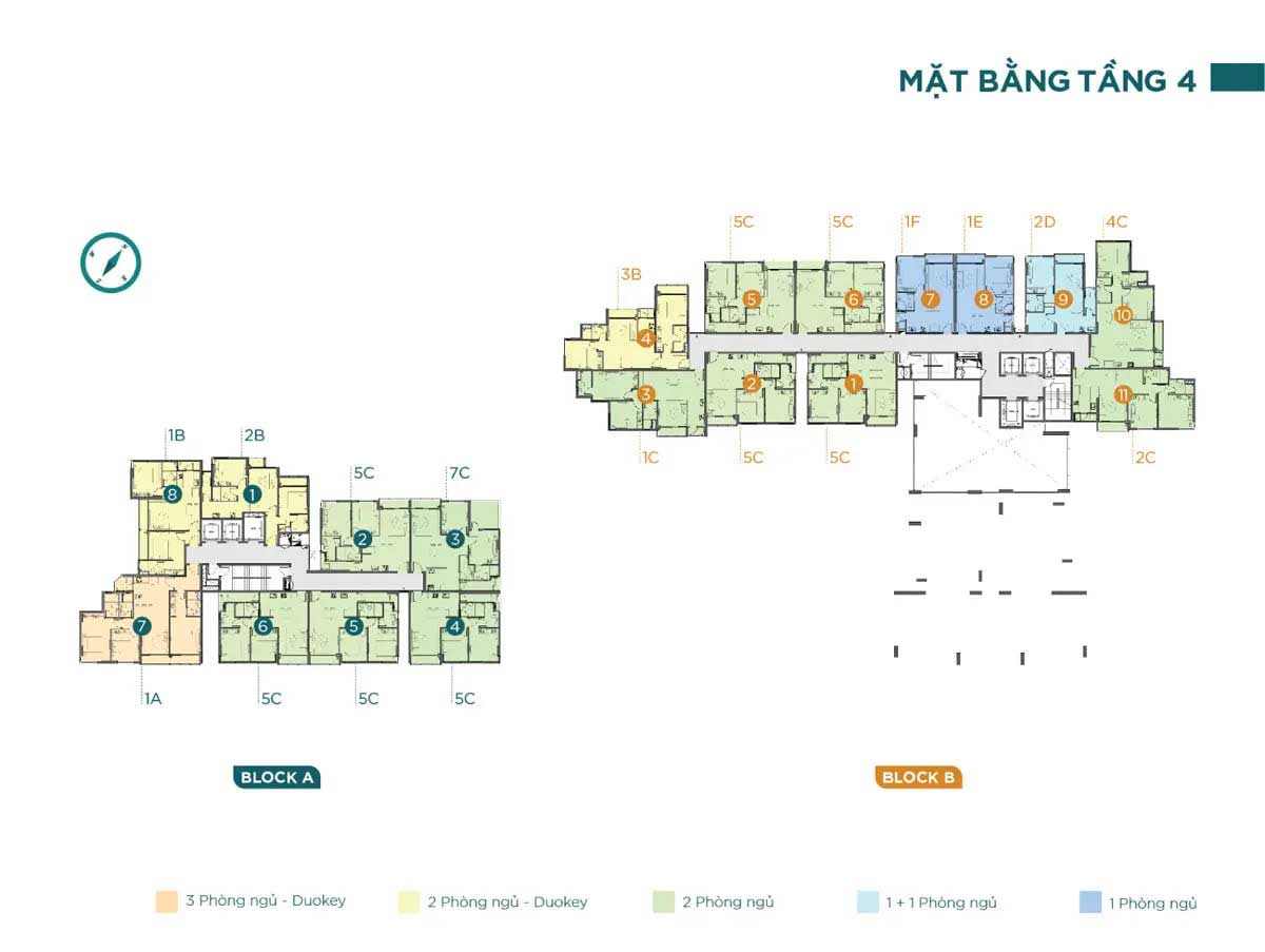 🔹 Khối K1: gồm khối đế K1 và 4 tháp A1, A2, A3, A4, tổng cộng 1.308 căn hộ. Trong đó: