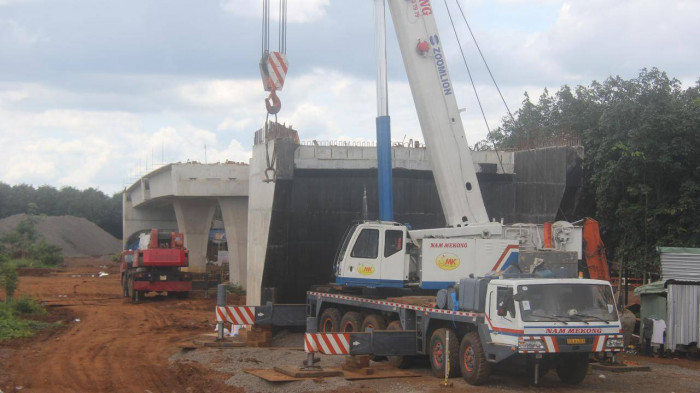 Các cây cầu trên tuyến cũng được đồng loạt thi công, nhiều phiến bê tông đã được sắp xếp đưa lên các bệ, trụ cầu.